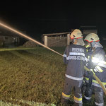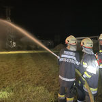3. Brandbekämpfung eines Wirtschaftsgebäudes mit zwei C-Rohren aus dem Löschbehälter.