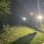 Unsere Monatsübung im September machte ihrem Namen alle Ehre: Im strömenden Regen rückten die Kameradinnen und Kameraden zur neuen Brücke am Uferweg über die Laßnitz aus.